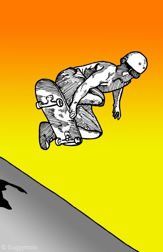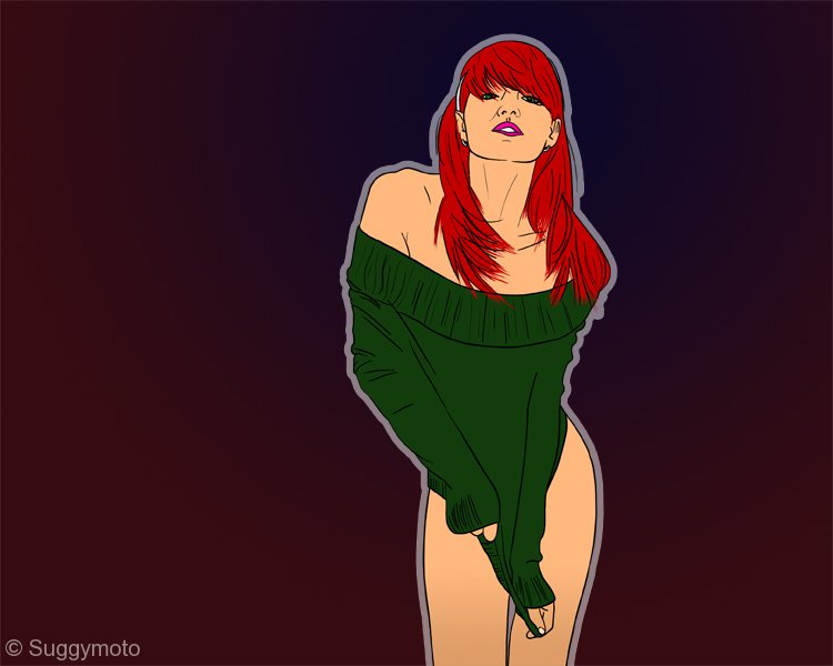 I have been using a comic style for a number of years. I have always enjoyed bold colours and outlines, so this particular style seems to fit me perfectly. I have learned to work quite quickly with it, sometimes finishing a piece in just over 2 hours.